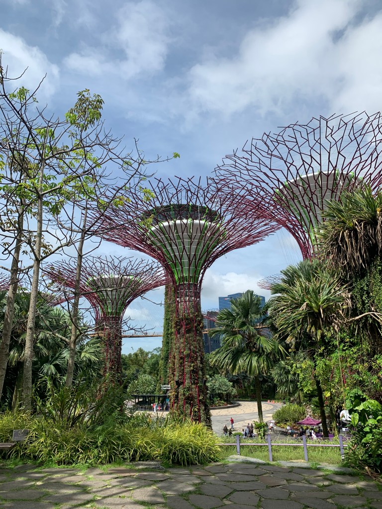 After an early night and a slight sleep in, we headed off to explore Gardens by the bay before the crowds came out. Beautiful big blue skies and sultry weather made for a lovely walk under the canopy of the trees and amazing gardens. Once the hoards from the cruise ship arrived we got out of there quick smart! After a stroll around the opulent Marina Bay Sands we finally found our way to the Maxwell Hawker Food Markets. Yummy and cheapπ we would like to believe the chicken is actually chicken, so we went vegetarian π We made it back to our hotel before the mid afternoon on cue rains started.