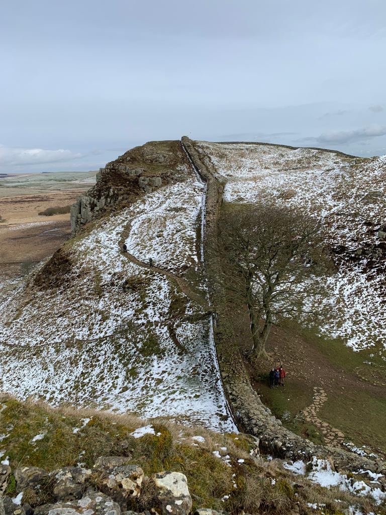 We were on our way to walk a section of historical Hadrians Wall. After a much need coffee stop to warm us up at The Sill, we parked up at Steel Rigg and set off to see Hadrians Wall and Sycamore’s Gap. With snow everywhere and scenery straight out of a tv show, it was quite amazing to see such a long still intact section of a wall that is 2000 years old. Most of the wall that spanned 73 miles from coast to coast to guard the wild north west frontier of the Roman Empire has disappeared. Over the years stones from the wall were used to build Castles, farmhouses and churches so hence there isn’t a lot of it left now. It was a very impressive to see such history.