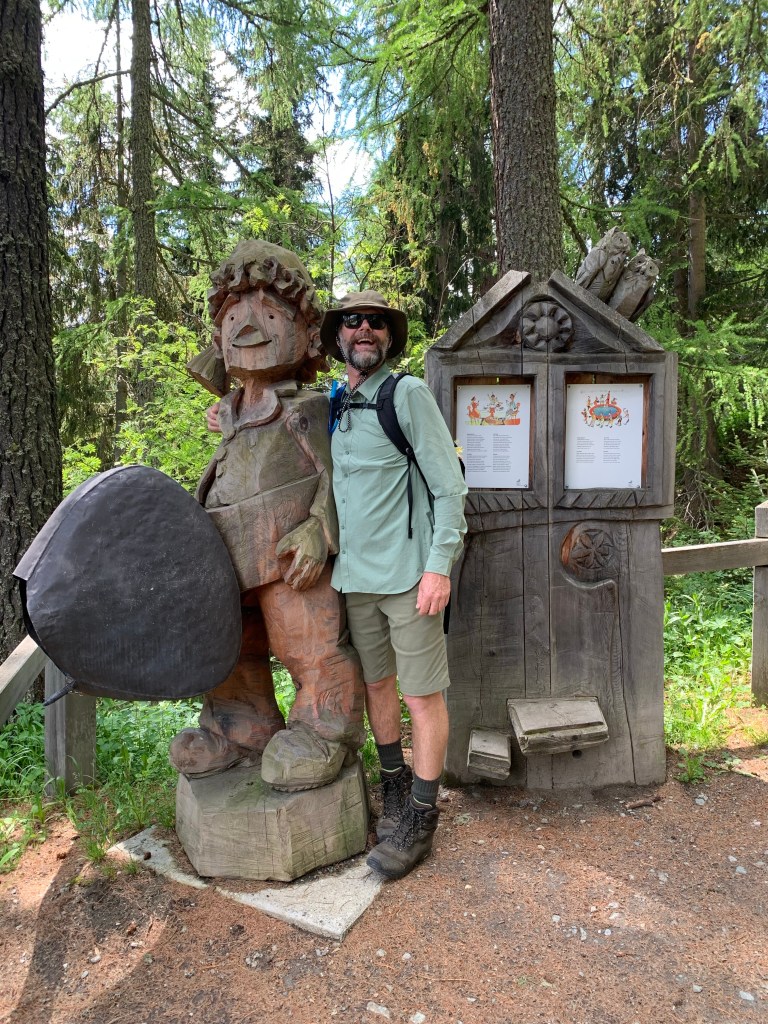 Are we walking through a fairytale? Do Fairies live under those rocks? Will we have to pay the Troll to cross the bridge? These were the thoughts going through our minds as we hiked up through the pine forest today. Every fairytale book we read as children came flooding back to us as we traversed through the tall pine trees with abandoned old huts dotted throughout and wildflowers lining the path. We really were walking through another land altogether. Starting from our Studio and heading straight into the forest up behind us we ascended for about 2 hours through a very magical place. We were extremely lucky to spot one red deer on the way. Our destination was to reach at least one of five lakes on the five lakes route. Most people just catch the chairlift up and walk to all the lakes and then catch the chairlift back down, but we opted to walk up hence we only made it to three of the lakes. But what a magical walk it turned out to be, with deer, squirrel’s, fairie’s😜, and the one thing we wanted to see the most, the famous black faced sheep. What a treat that was indeed. They are so fluffy and cute and we had a small group come right down to us on the track.