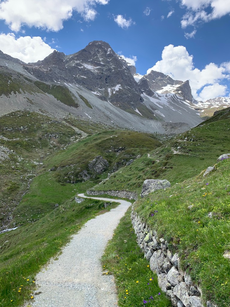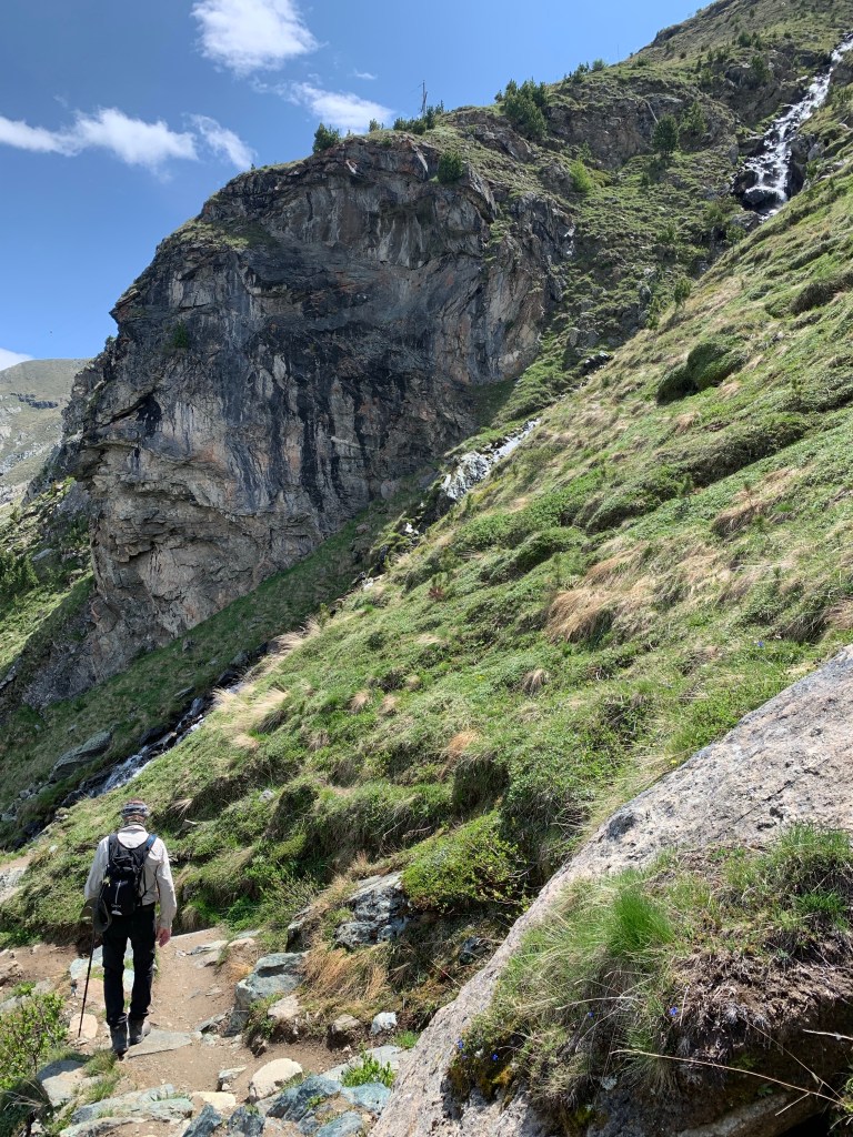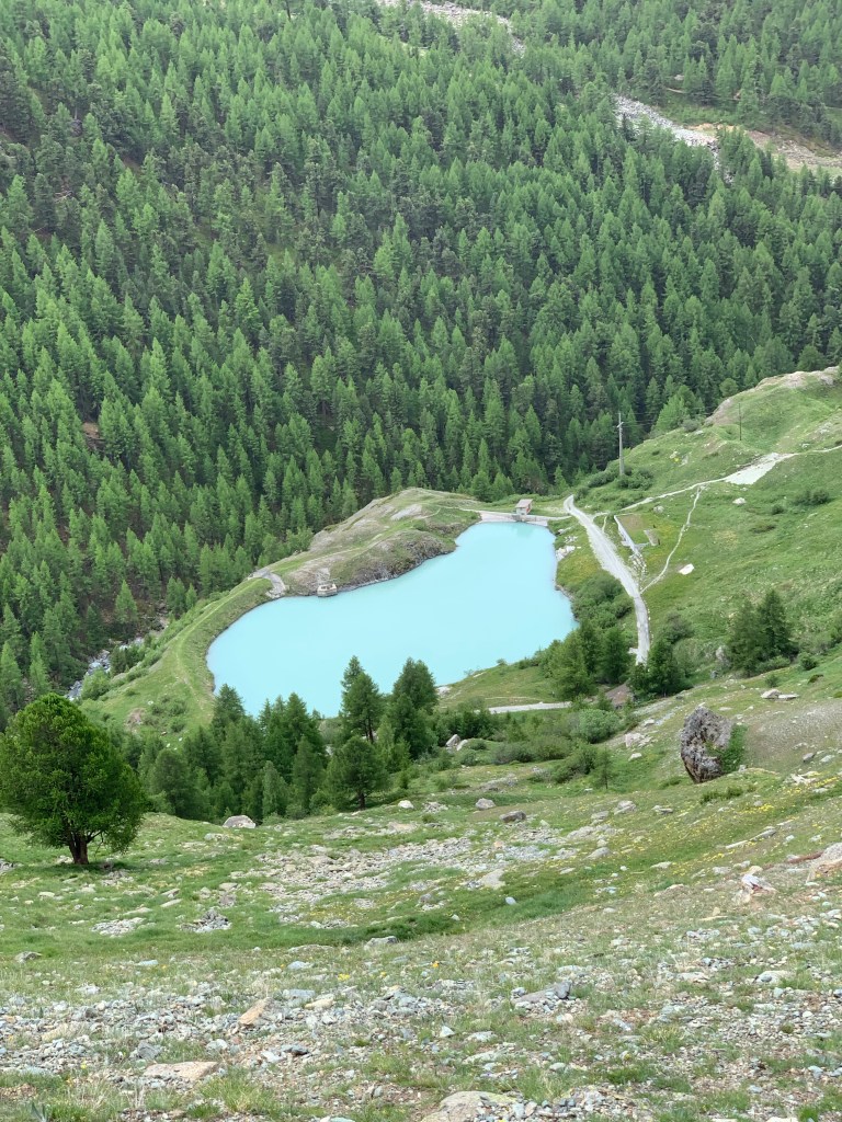 We made it to Moosjisee lake, Grindjisee lake and Grunsee lake. All three were beautiful in different ways. Moosjisee lake was the most amazing artic blue colour and Grunsee lake was a swimming lake. And yes we witnessed one brave chap jump in. Once we had reached Grindjisee lake the crowds started to filter through. We discovered it is definitely a popular walk. Wildflowers were out in abundance as were our little friends the Marmots. Finding a quiet spot away from the humans we enjoyed our lunch with a view of the small waterfall. Starting to feel it in the legs we then opted to start heading back down to Zermatt.