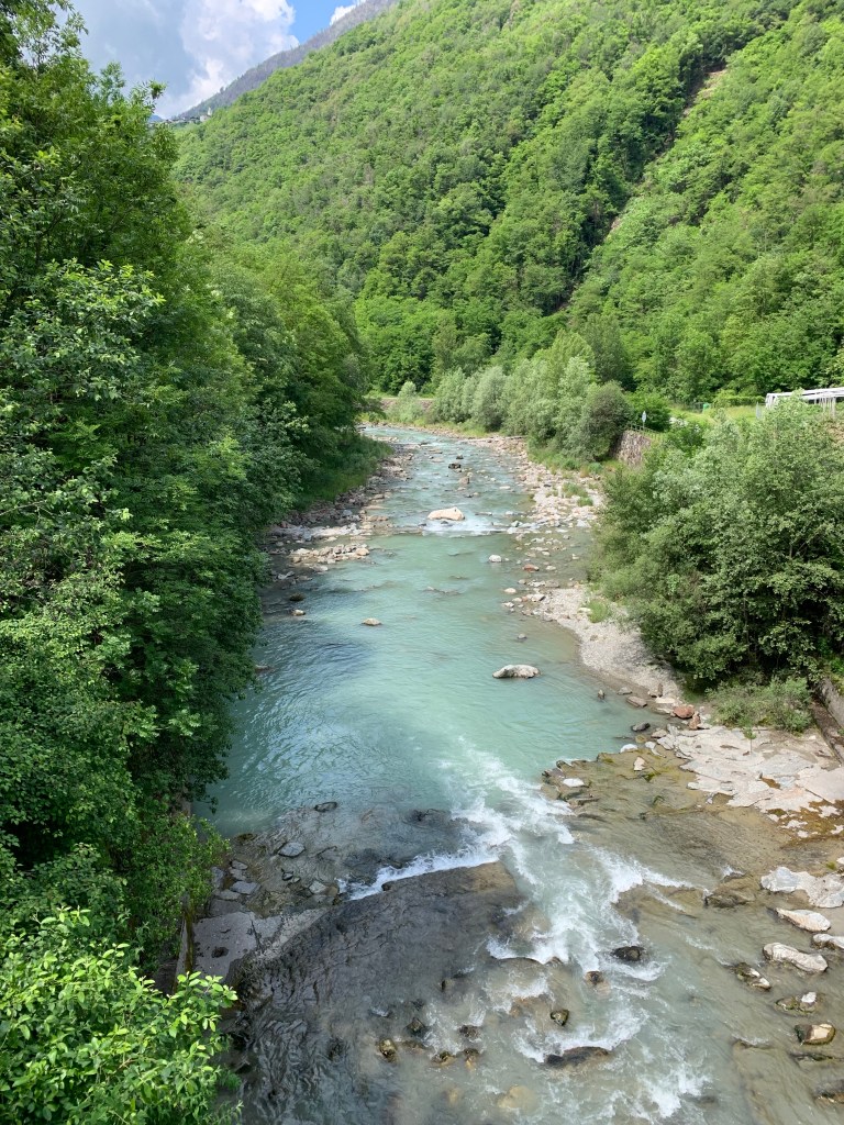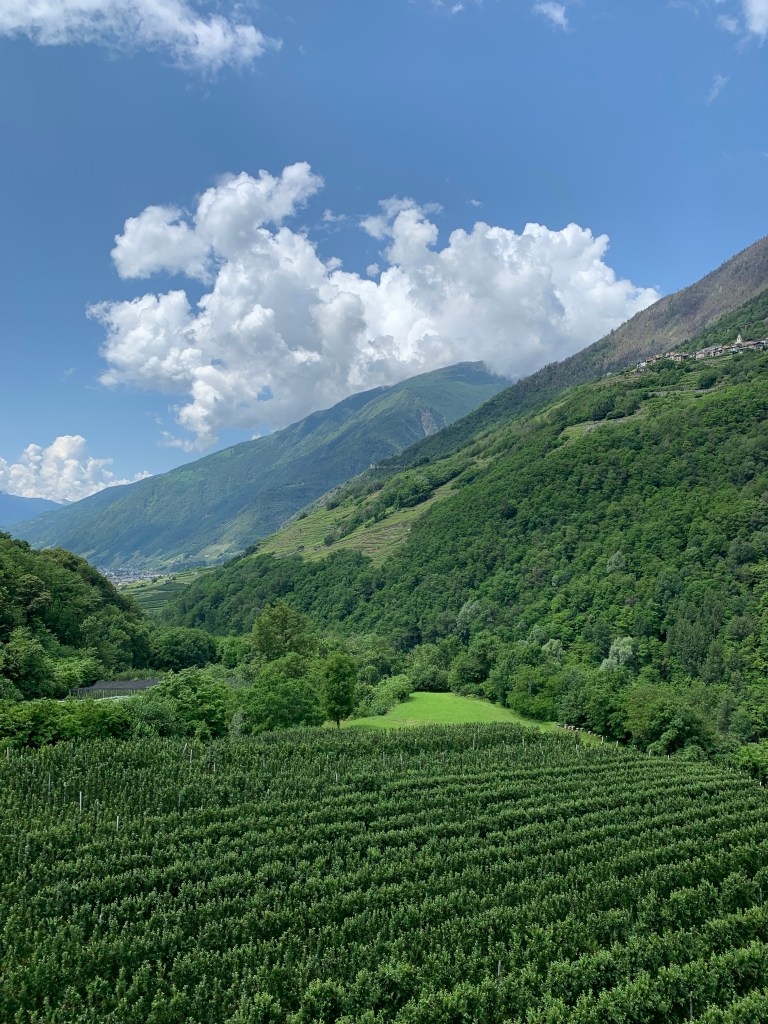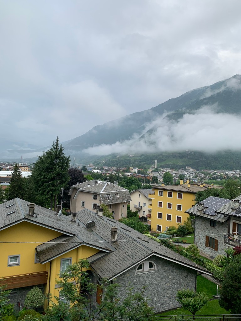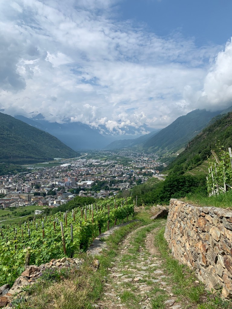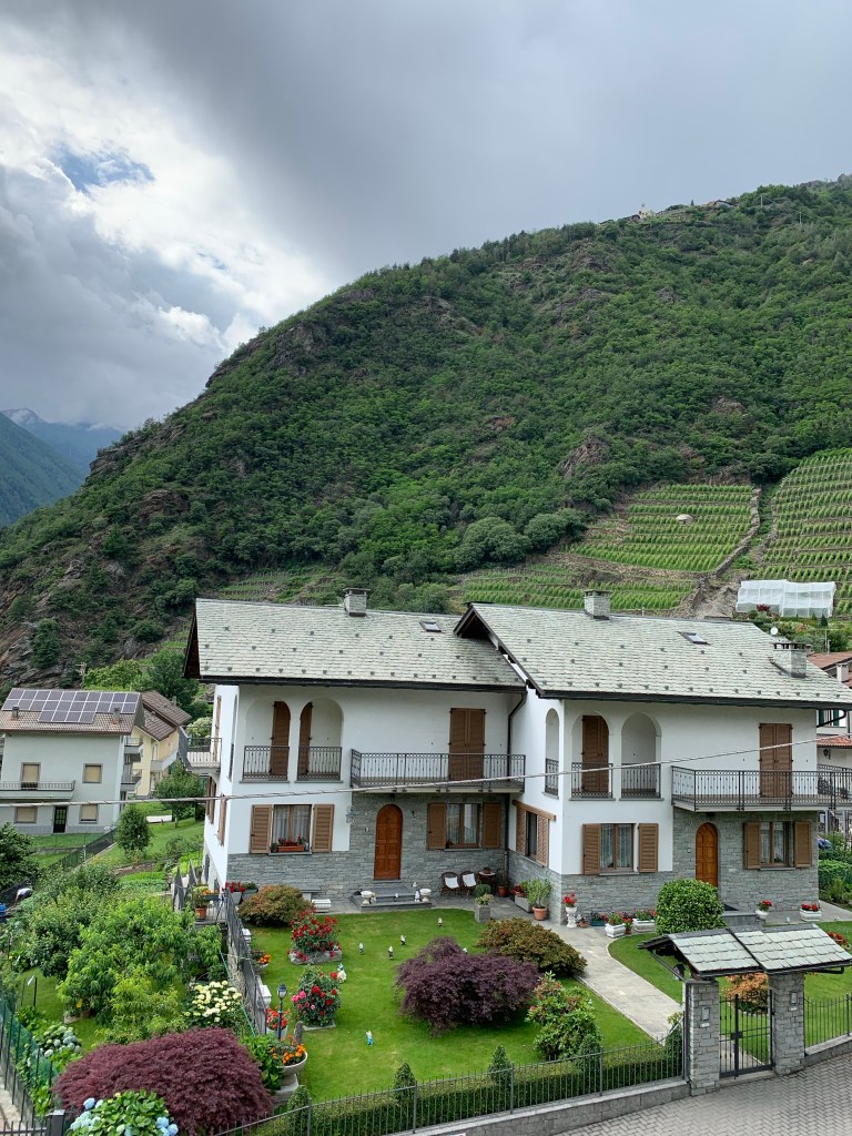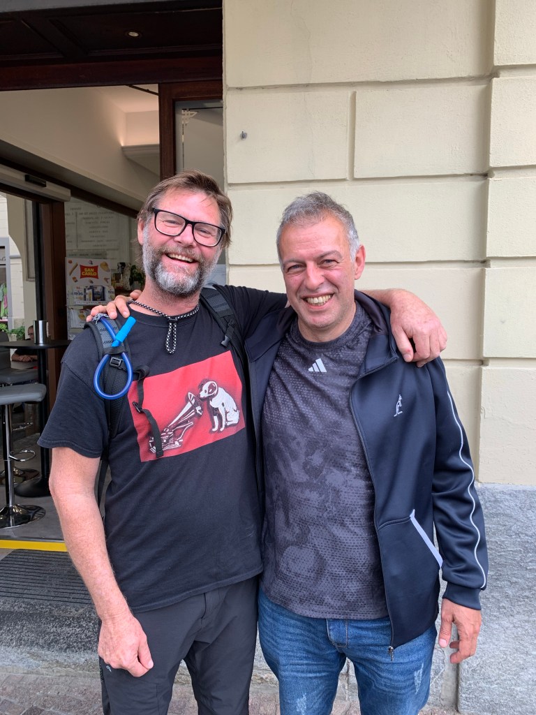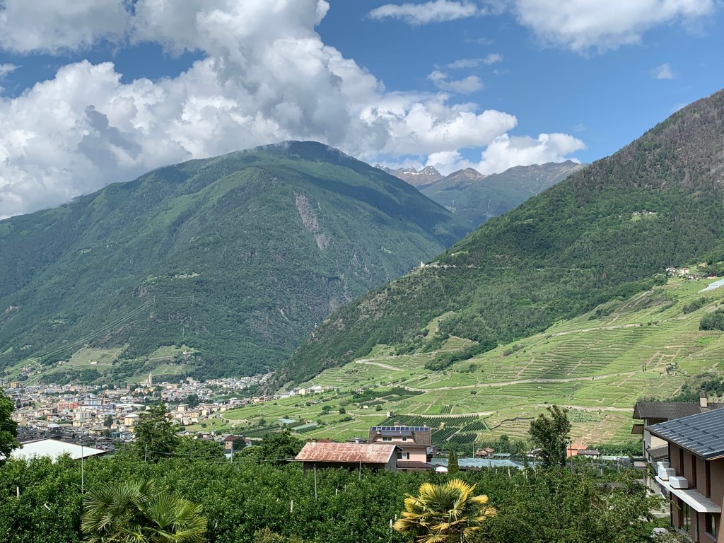 With sore, stiff and tired bodies we slowly made our way back into Tirano this time through acres of Kiwi Fruit Vines. Wow they are all full of little furry baubles just waiting to ripen.🥝